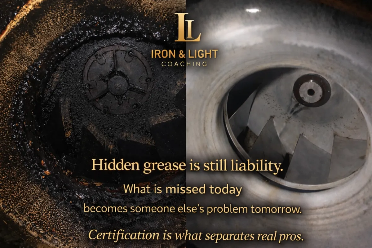 Accredited Professional Certification: Iron & Light Coaching is a CPD Standards Office Registered Training Provider. Combined with NFPA 96 compliance training, the program prepares students for real-world commercial kitchen exhaust cleaning.